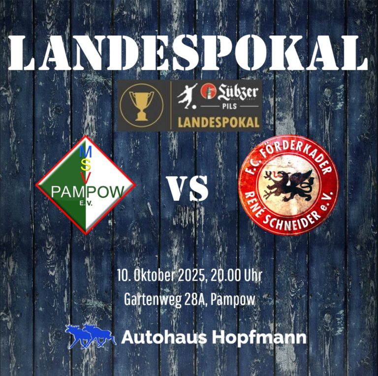 Unsere erste Herrenmannschaft gastiert morgen Abend um 20:00 Uhr beim MSV Pampow zur 3. Runde des Landespokals MV.Nach zuletzt vier