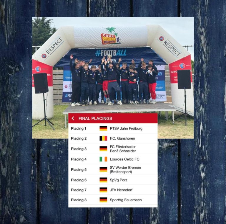Mit vollem Fokus visiert Torhüter Oskar Wittfoth seinen irischen Gegner von Lourdes Celtic FC an. Lange bleibt der 13-Jährige auf