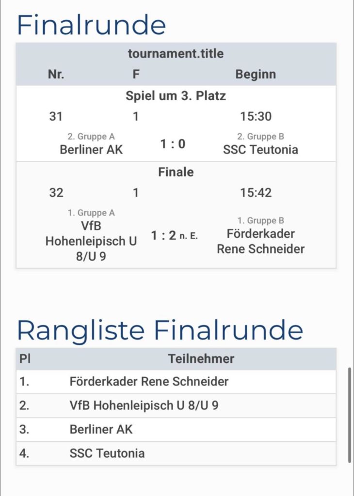 Unsere Jungs der U9 waren am Wochenende in Berlin zu Gast. Dort traten sie beim hochkarätig besetzten Turnier des 1.FC Wilmersdorf mit 24 Mannschaften (u.a. Union Berlin, Viktoria Berlin, BFC Dynamo…) an.