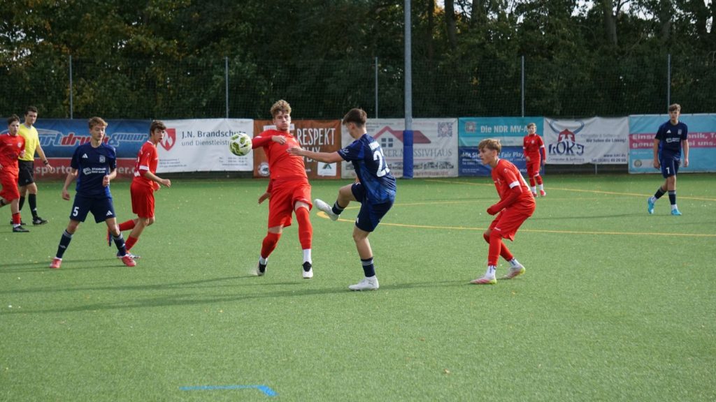 In der zweiten Runde des Landespokals Mecklenburg-Vorpommern traf die U16 des FC Förderkader René Schneider am Wochenende auf heimischem Platz auf die TSG Gadebusch. Beide Mannschaften, die auch in der Landesliga aktiv sind, begegneten sich im Pokalwettbewerb nun auf Augenhöhe – zumindest auf dem Papier. Auf dem Spielfeld jedoch dominierten die Hausherren von Beginn an das Geschehen.
