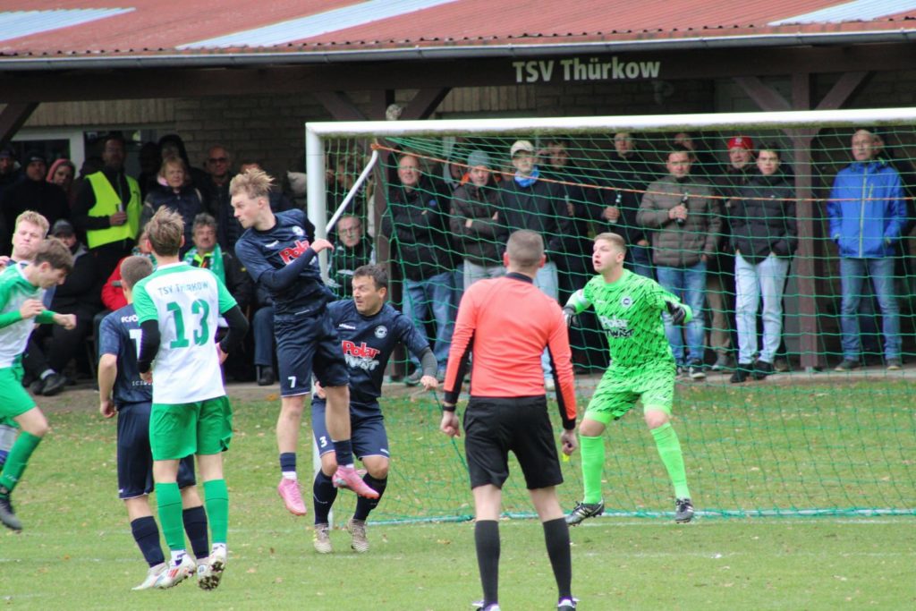 Das Spiel kann man in die Kategorie „Solide“ einordnen. Wir waren über die gesamten 90 Minuten spielbestimmend und haben auch relativ früh das Ergebnis hochgeschraubt, sodass es ein ruhiges Pokalspiel werden sollte. Das 1:0 entstand durch eine Direktabnahme nach einem gegnerischen Querschläger im Strafraum und das 2:0 legten wir per Ecke nach. In der 2. Halbzeit wurde der Ball am 2. Pfosten für den Endstand, nach einem Querpass der sich aus einer gewühlten Aktion ergab, über die Linie gedrückt. Leider hat sich unser Torwart nach dem letzten Wechsel verletzt, somit haben wir mit Feldspieler im Tor und 10 Mann das Spiel beendet. Gegen ein höheres Ergebnis hat sich Thürkow beherzt in einem durchaus fairen Spiel gewehrt.