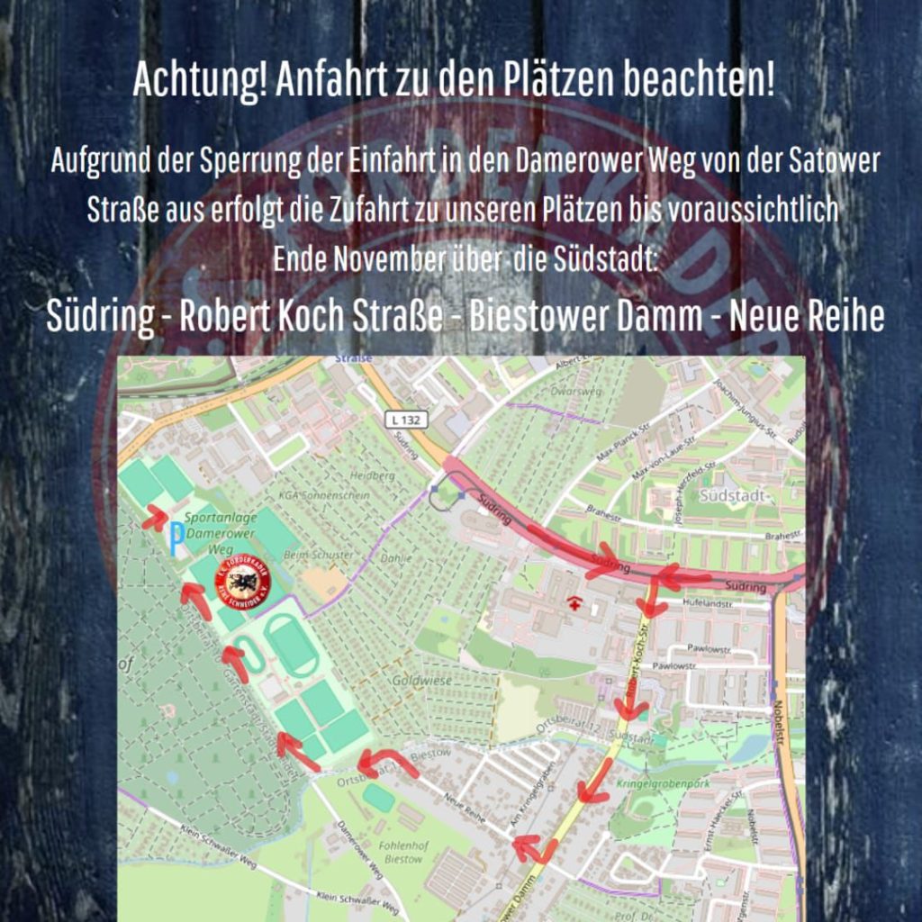 ℹ️ Die Verkehrssituation rund um den Damerower Weg bleibt unübersichtlich. Deswegen informiert euch rechtzeitig über den bestmöglichen Anfahrtsweg!