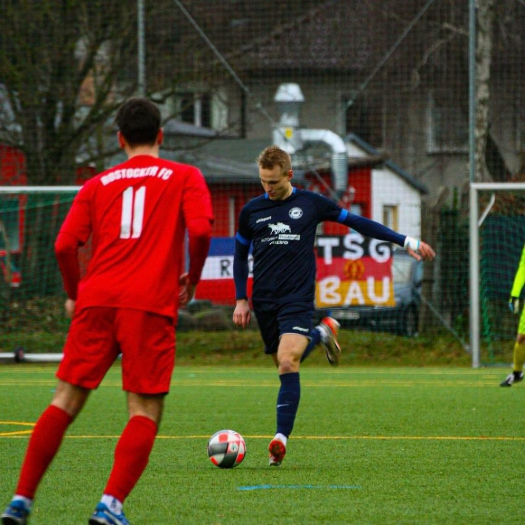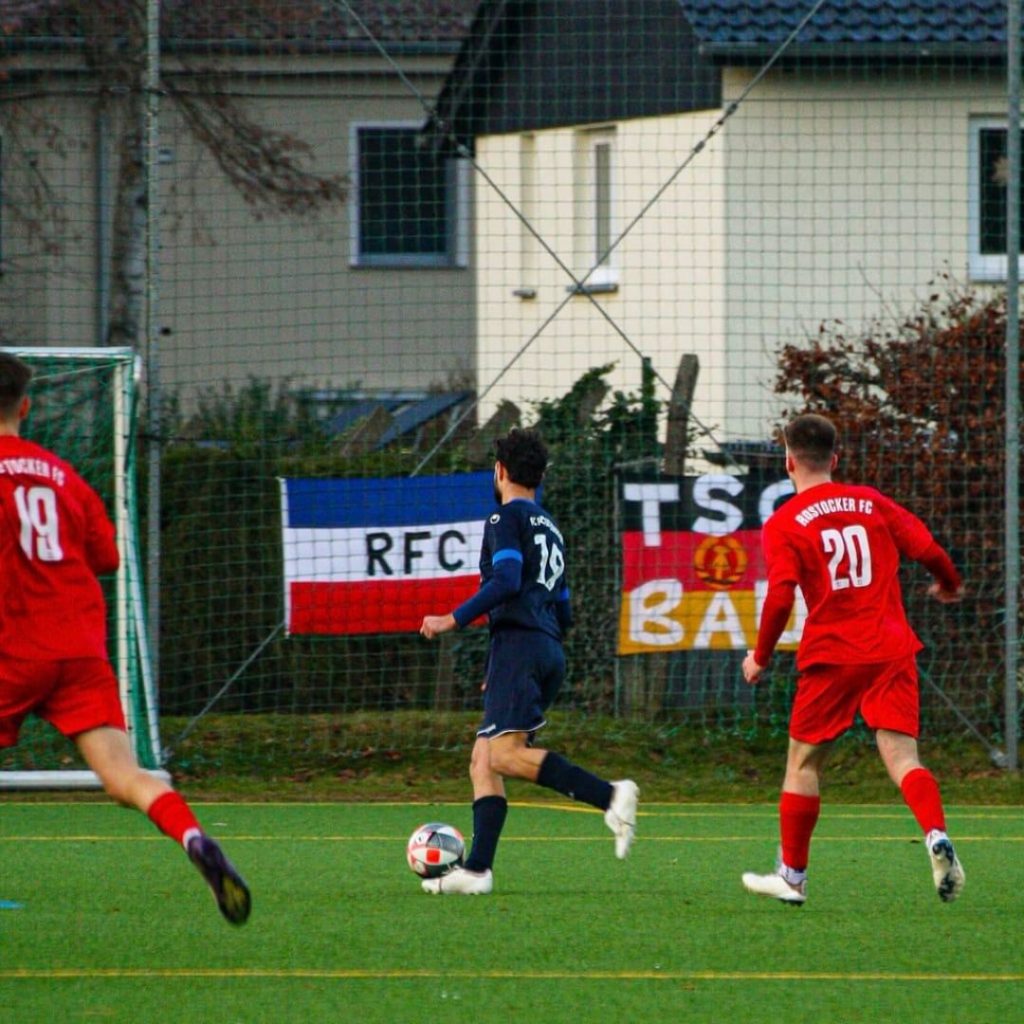 Unsere erste Herrenmannschaft war im Auswärtsspiel beim Damerower Weg Rivalen Rostocker FC gefordert, nur wenige Meter von der eigenen Heimspielstätte entfernt. Auf dem kleinen und engen Kunstrasen entwickelte sich von Beginn an eine intensive Partie, in der die Gastgeber sehr kompakt standen und nur selten offensive Akzente setzen konnten. Unsere Marineblauen übernahmen weitestgehend die Spielkontrolle, taten sich jedoch schwer, frühzeitig für klare Verhältnisse zu sorgen.