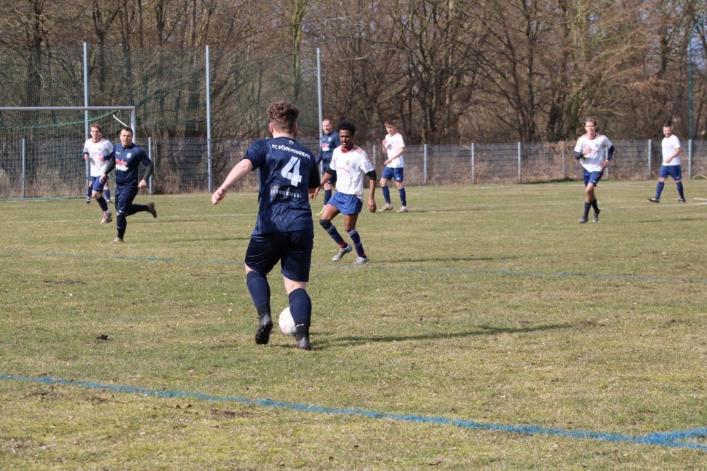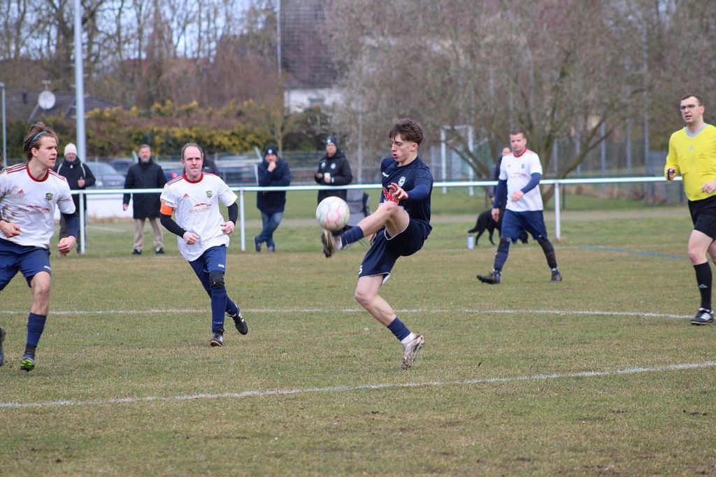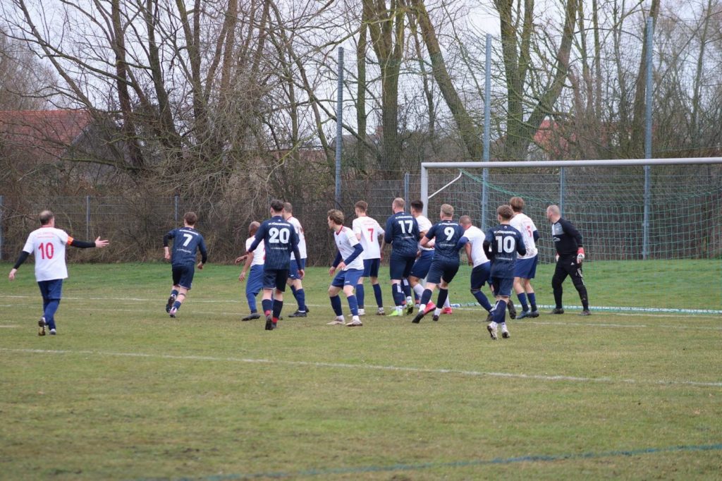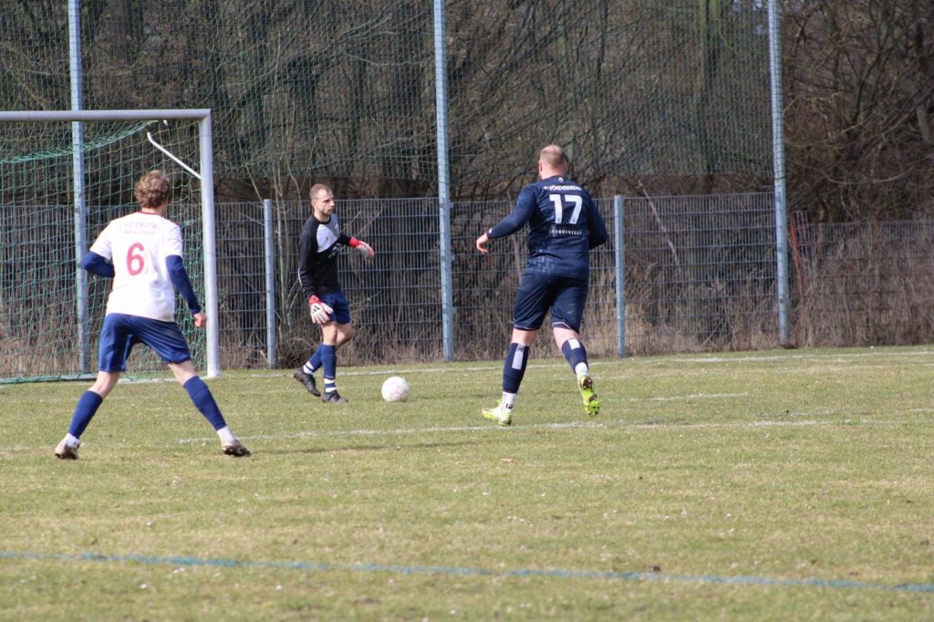 Zwar erspielten wir uns einige Möglichkeiten, doch fehlte es zunächst an der nötigen Präzision im Abschluss. Nachdem wir die ersten drei Eckbälle gewissermaßen noch zum „Einspielen“ genutzt hatten, brachte schließlich eine Standardsituation die Erlösung: Der durchlaufende Leopold Großklaus stieg am höchsten und köpfte zur 1:0-Führung ein. Damit war aus Sicht des Spielverlaufs zur ersten Halbzeit bereits alles erzählt.