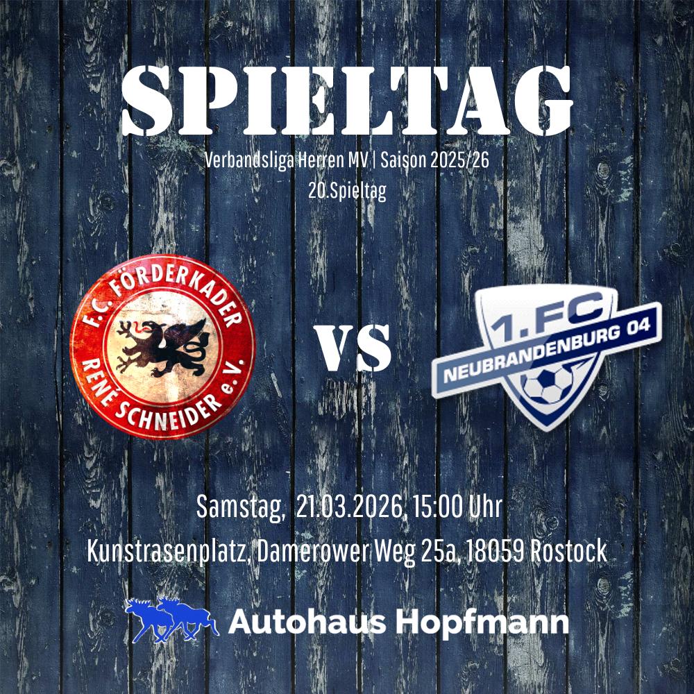 Am Samstag um 15 Uhr wartet auf unsere erste Herrenmannschaft ein echtes Topspiel. Auf heimischem Kunstrasen empfängt der FC Förderkader den formstarken Tabellenzweiten, den 1. FC Neubrandenburg 04.