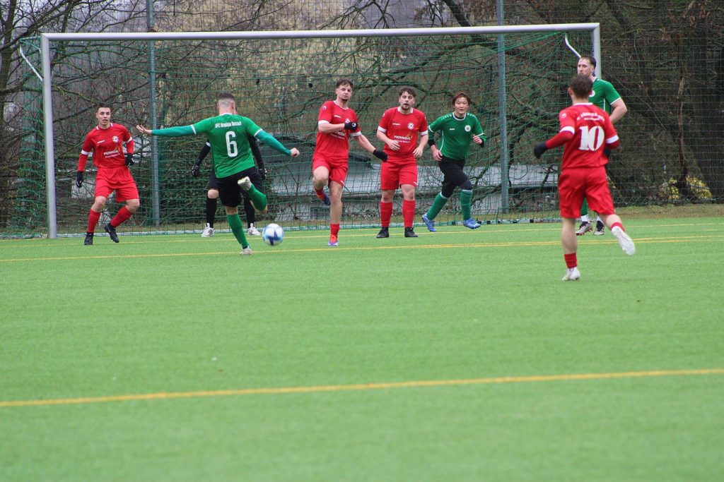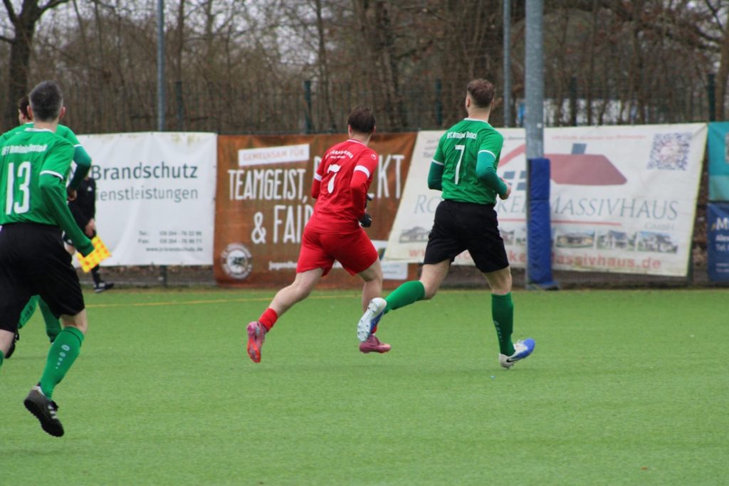 Erst in der zweiten Hälfte des ersten Durchgangs kamen wir besser ins Spiel. Unsere Spielweise griff zunehmend und wir brachten die tapfer kämpfenden Arminen – die ohne Auswechselspieler angereist waren – ins Laufen. Daraus ergaben sich auch Chancen. Eine davon nutzte Jesse Stranghöner, der aus 16 Metern gezielt abschloss und traf.