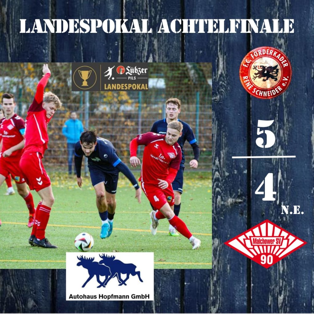 Wahnsinn! Was für ein Pokalfight – mit dem besseren Ende für unsere 1. Herren! Im Landespokal-Achtelfinale gegen den Malchower SV setzte sich der FC Förderkader am Samstag nach 120 hochintensiven Minuten, einem dramatischen Elfer-Thriller und ganz viel Ahrens verdient durch und steht somit im Viertelfinale.Die Marineblauen starteten stark in die Partie und gingen früh durch […]