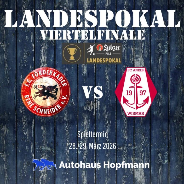 Das Ergebnis der Auslosung hat uns ein Heimspiel gegen Anker Wismar beschert. Somit empfangen wir den Gast aus der Oberliga